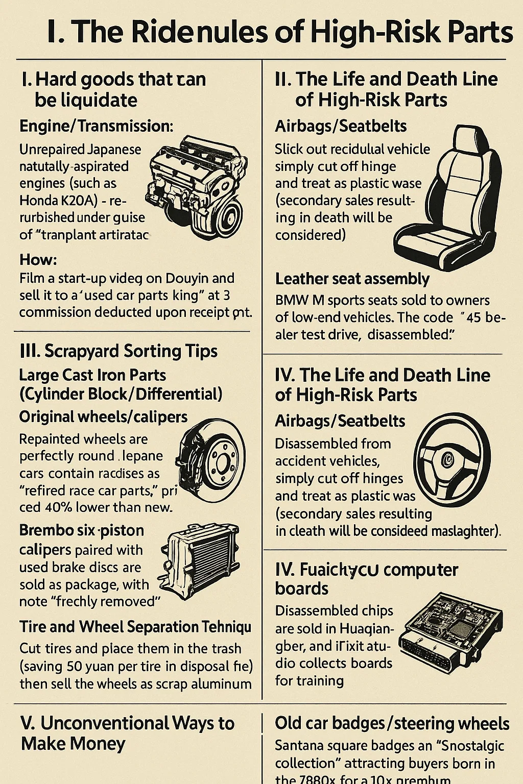 Ao lidar com usados peças de carro , siga as três regras rígidas de "vender o que puder, descartar o que deveria e evitar a área cinzenta".