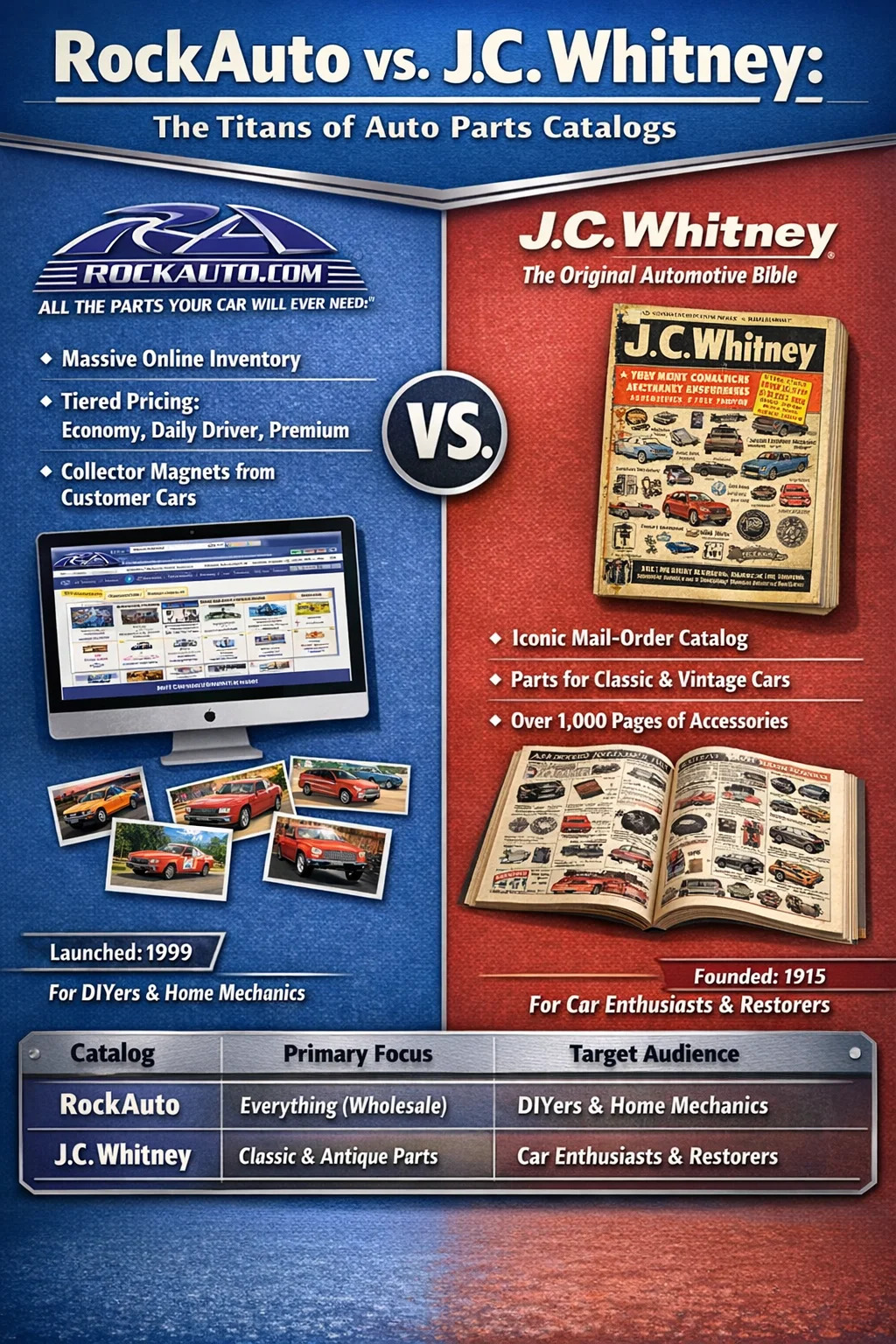 Quando as pessoas perguntam sobre o catálogo de peças automotivas mais famoso, dois nomes dominam a conversa: Rock Auto para a era digital e JC Whitney para significado histórico. RockAuto tounou-se o padrão ouro moderno, oferecendo um banco de dados on-line exaustivo que cobre quase todos os peça de automóvel fabricados nas últimas décadas. Para quem se lembra da era dos catálogos de papel por correspondência, J.C. Whitney era o rei indiscutível, conhecido como a “Bíblia” do mundo automotivo DIY.