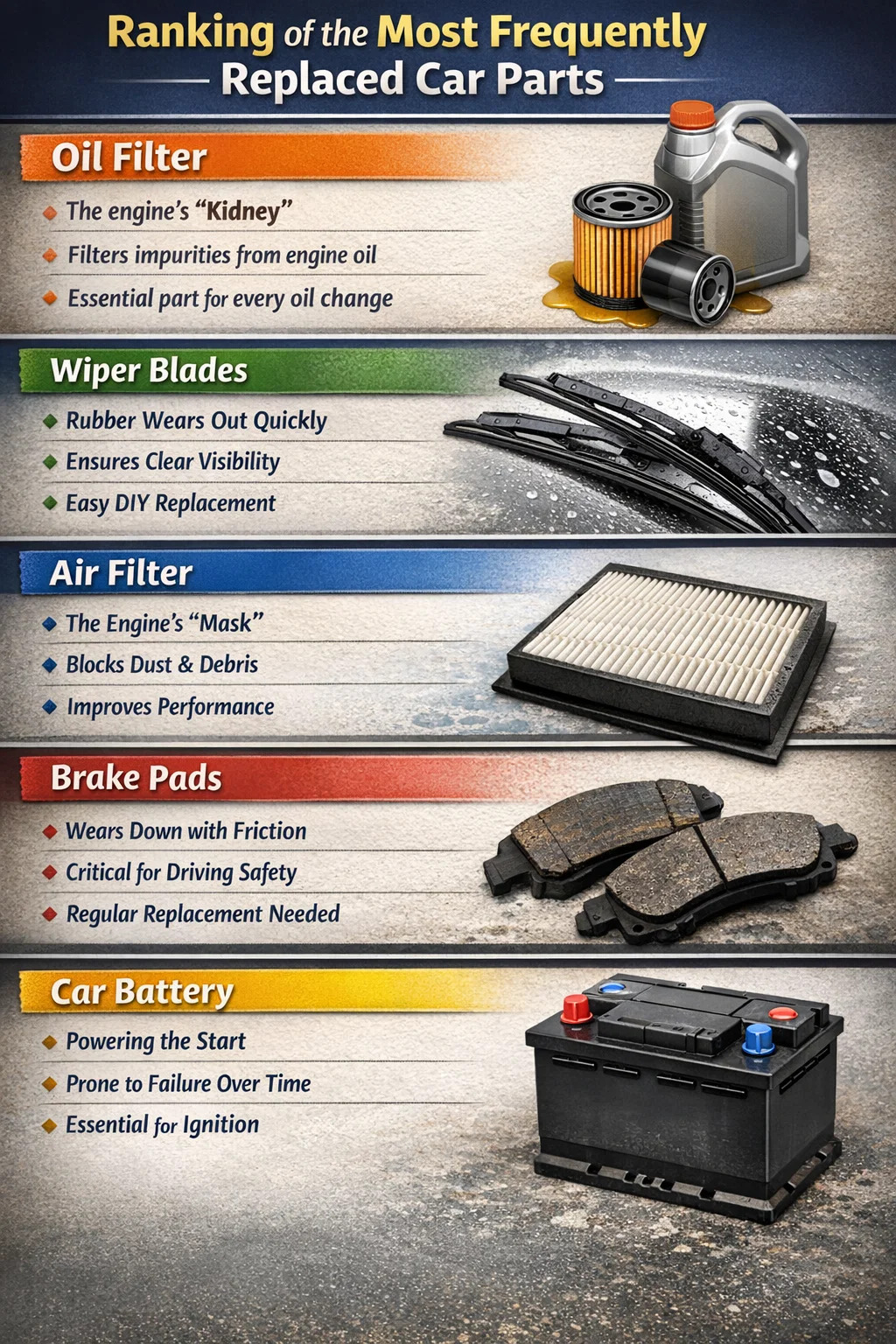 ▶Classificação dos substituídos com mais frequência Peças de carro